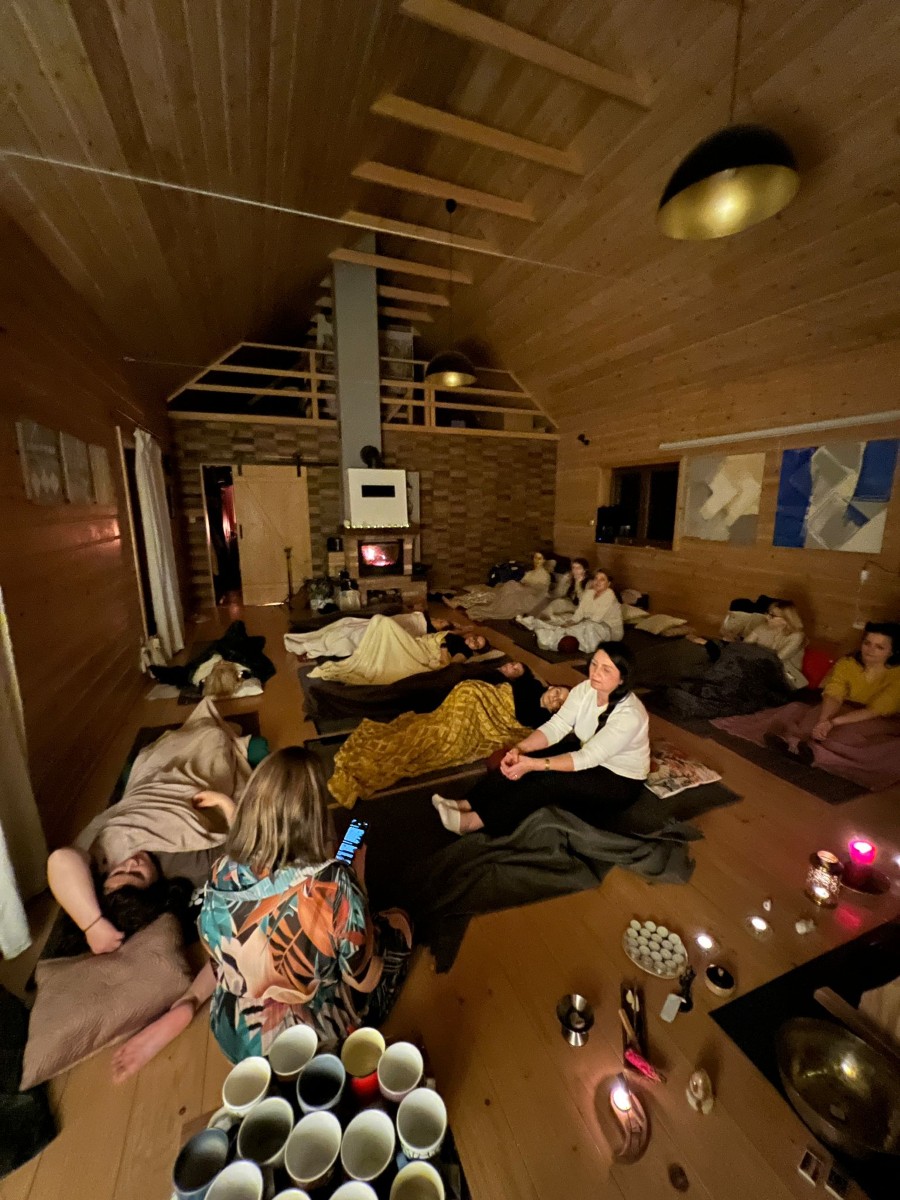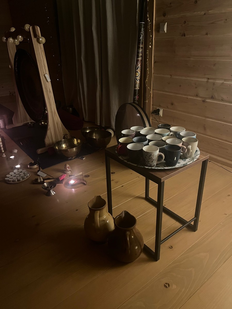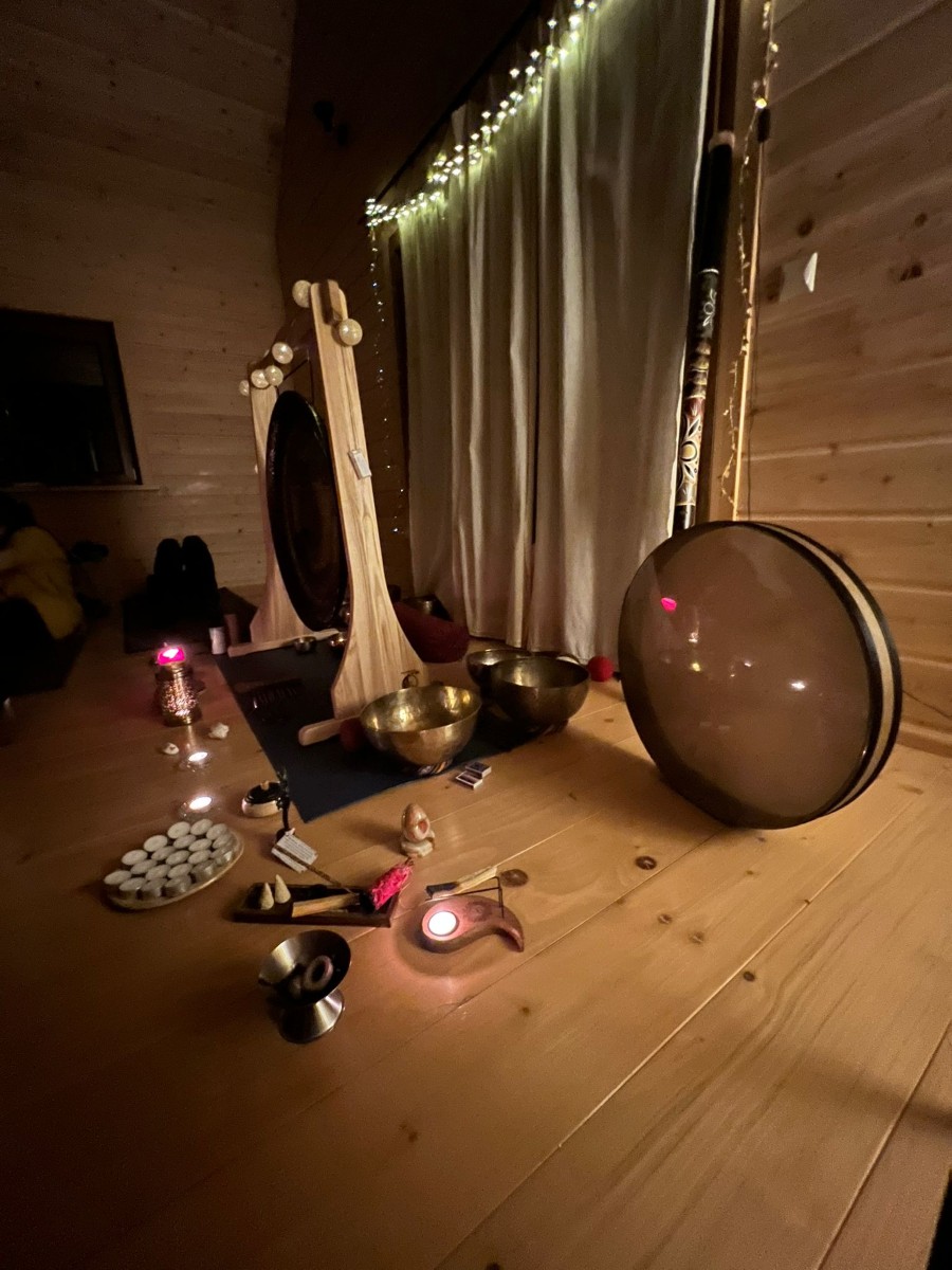 Wieczorami zanurzałyśmy się w dźwięku – w kilkugodzinnym koncercie gongów, który prowadził w głęboką regenerację i ukojenie układu nerwowego.