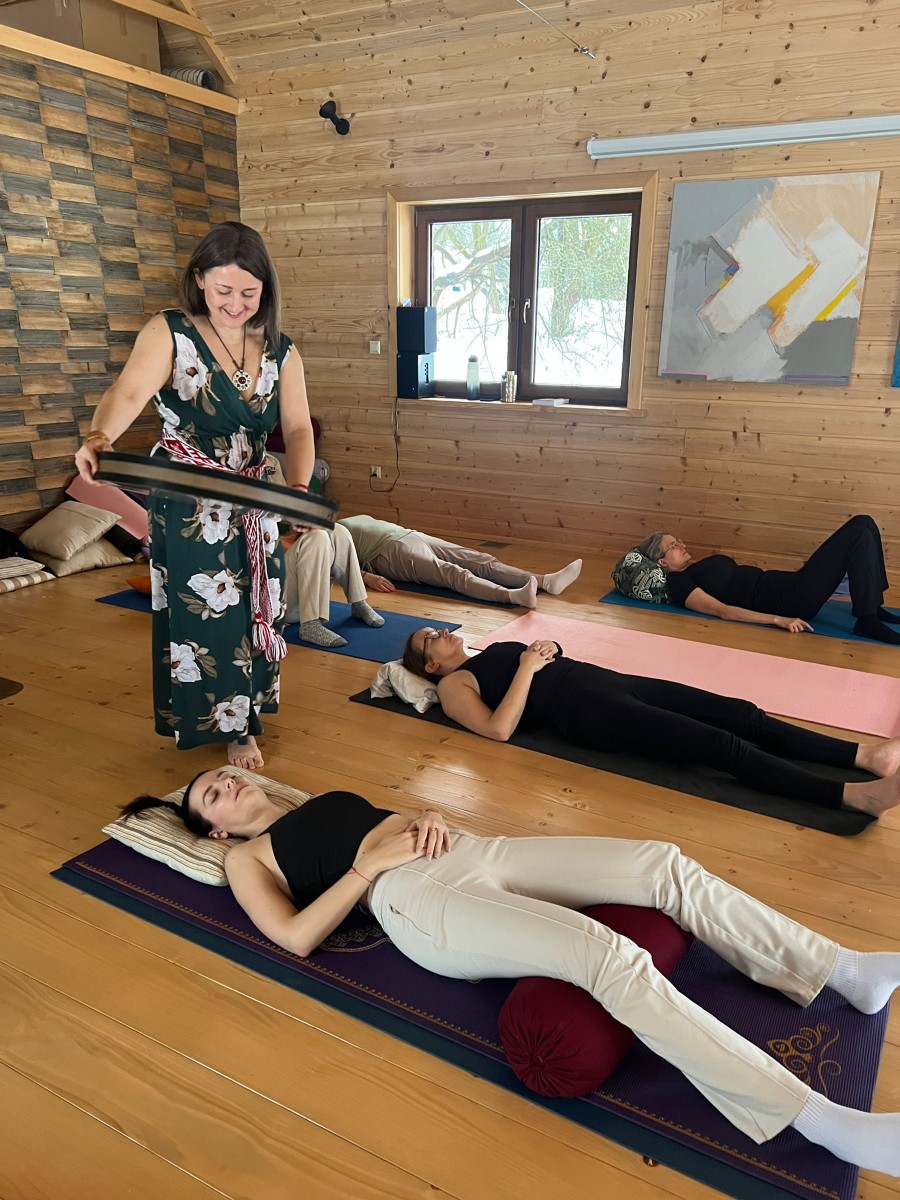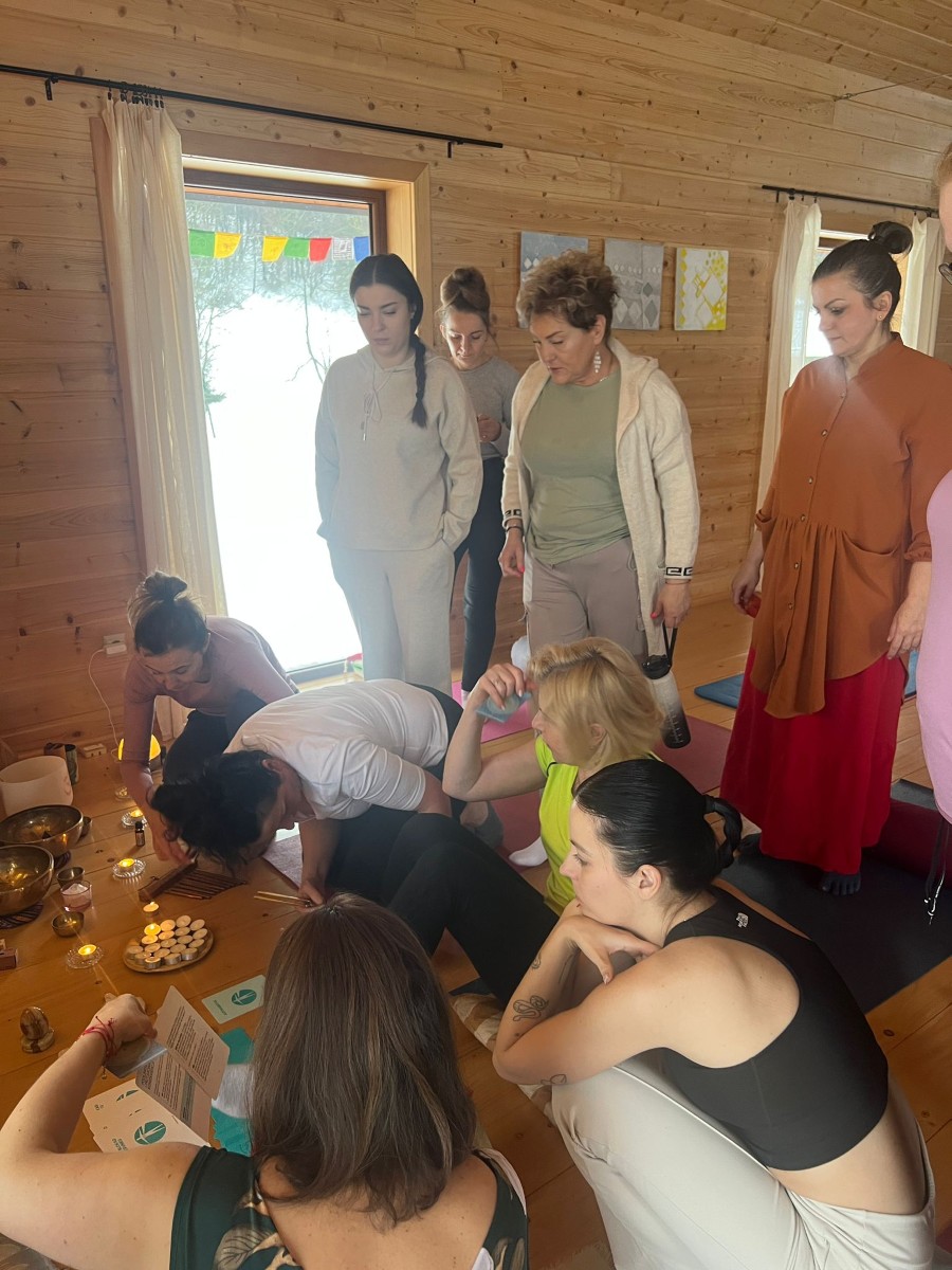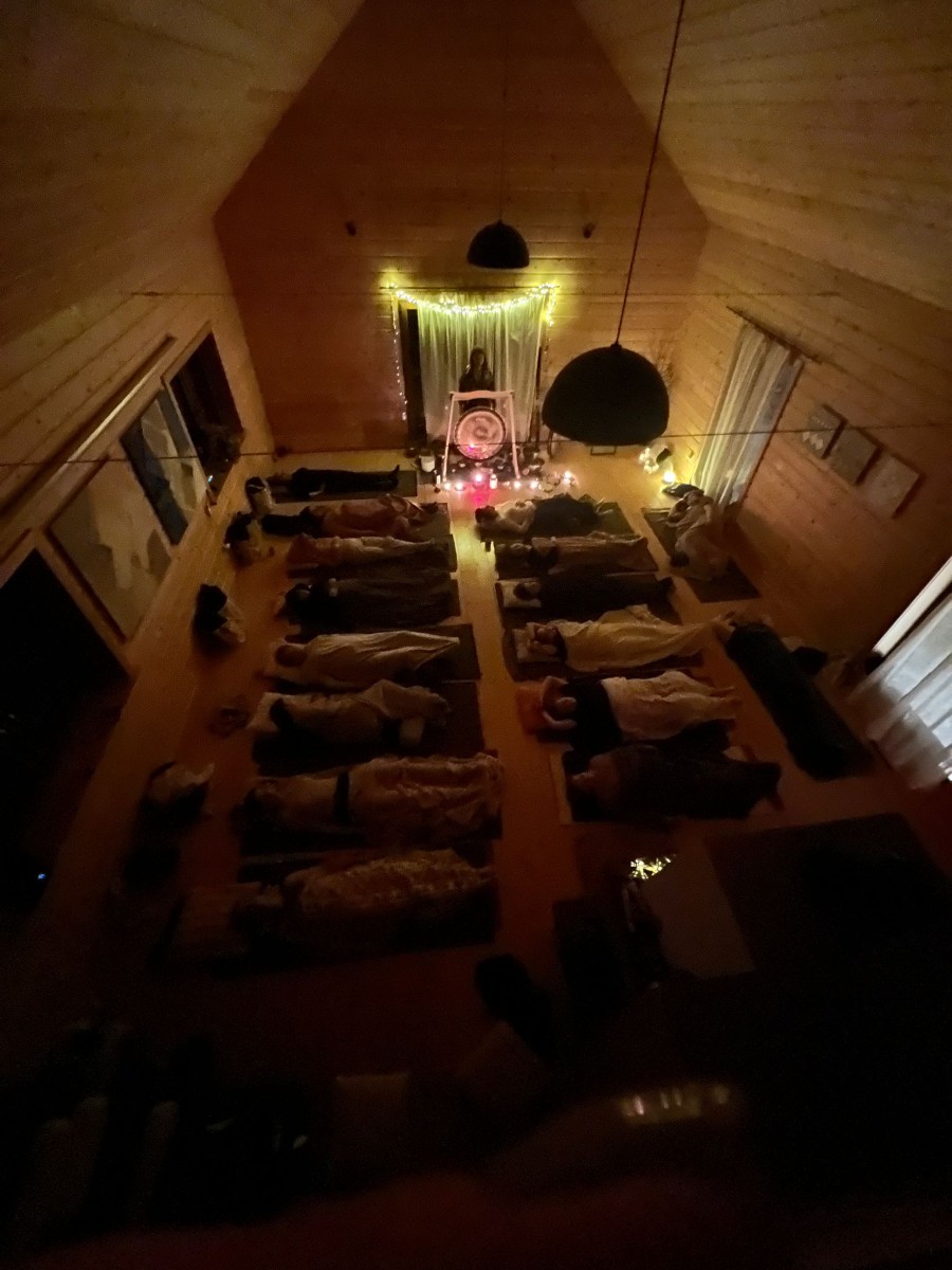 Wieczorami zanurzałyśmy się w dźwięku – w kilkugodzinnym koncercie gongów, który prowadził w głęboką regenerację i ukojenie układu nerwowego.